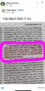 I spotted this on Facebook, shared with the heading, ‘THE BIBLE SAID IT ALL’. and then the post includes a snapshot of a quote from one of the many bibles. The quote is red-underlined and then further highlighted with a great purple border that was added digitally. The image and post don’t include a source …